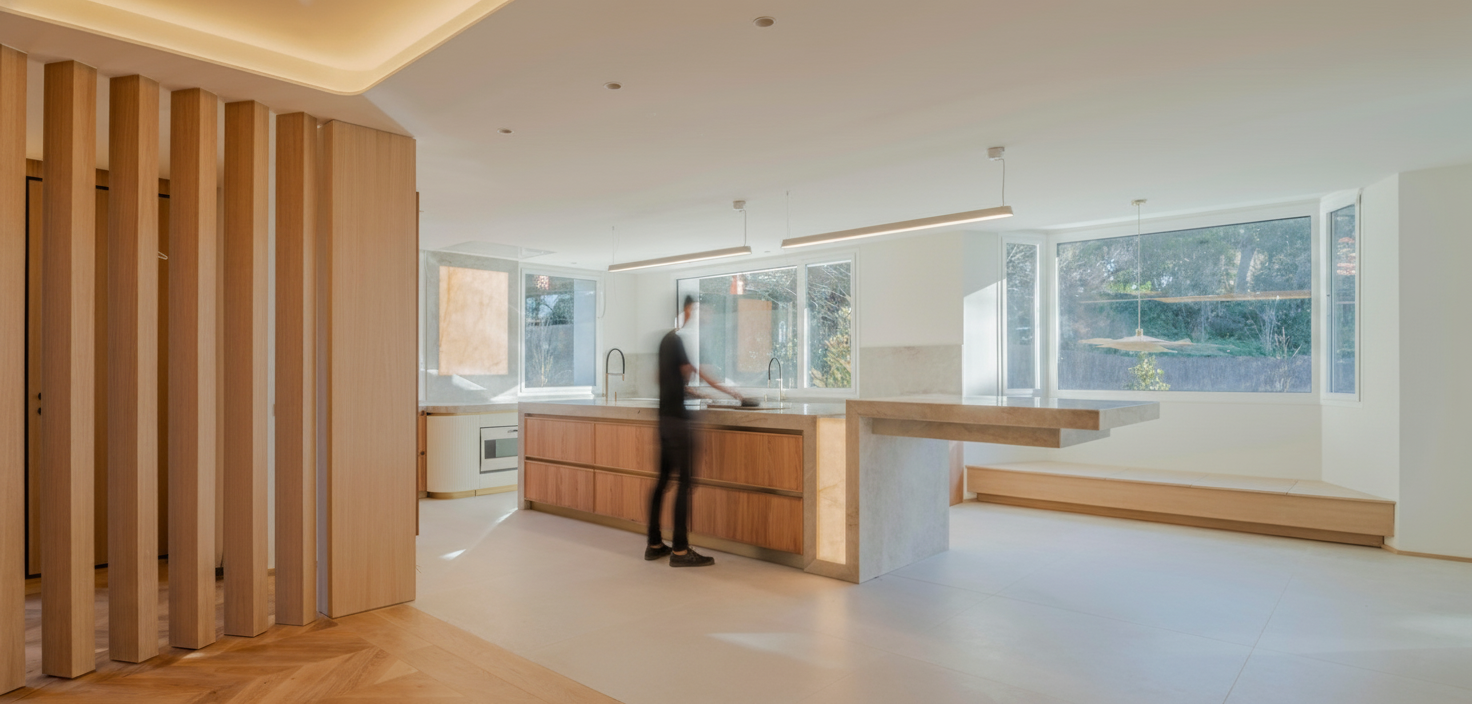 Nos encontramos con una vivienda antigua de ladrillo y teja que necesitaba un cambio completo. Llevamos a cabo una reforma integral tanto en el interior como en el exterior. Para mejorar la eficiencia energética, instalamos sistemas de geotermia y reforzamos el aislamiento de la fachada y la cubierta. En el interior, abrimos los espacios, creamos vistas diagonales y jugamos con la iluminación para darle vida. El resultado: una vivienda renovada y lista para ser vendida.